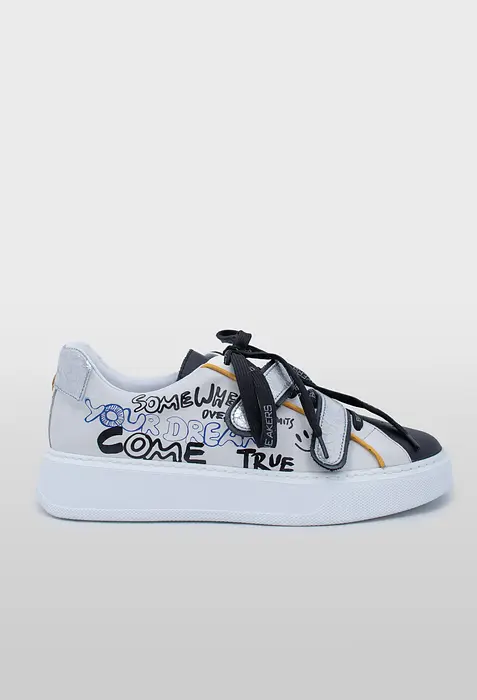 Тези черни кецове съчетават спортно-елегантен стил с модерен и отличителен дизайн, благодарение на ситопечата с текст. Изработени са от висококачествена естествена кожа както отвън, така и като хастар, което гарантира издръжливост, мекота и дишаемост за краката. Закопчаването е комбинация от връзки и лепенки, осигуряваща сигурно и регулируемо прилягане. Равното ходило е изработено от олекотена гума (полиуретан) за максимално удобство при ходене, а кръглият връх придава завършен вид.