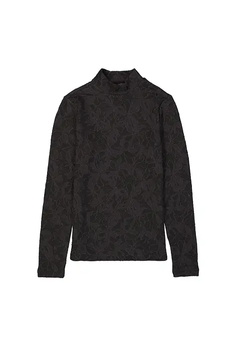 Блуза с дълъг ръкав и жакардова структура. Този дълъг ръкав е с имитация на деколтето, дълги ръкави и стандартна кройка. Този артикул е изработен от 40% памук, 38% полиестер, 17% вискоза и 5% полиамид.