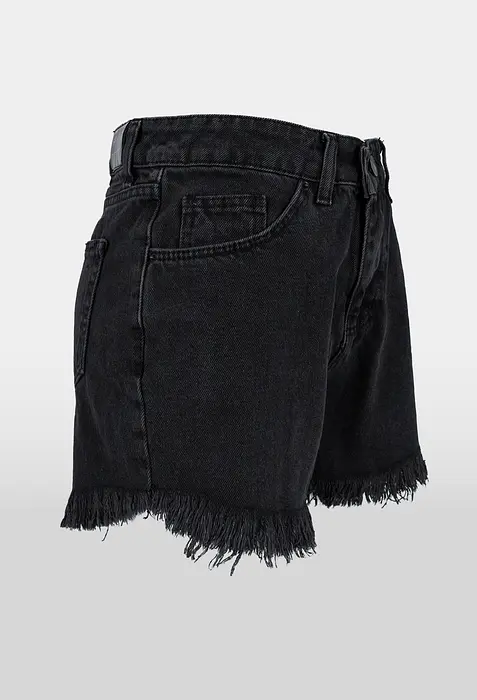 Тези черни къси дънки предлагат модерен и подчертаващ фигурата силует с кройка по тялото и висока талия. Изработени от 100% памук, те са меки, дишащи и осигуряват комфорт. Дължината им е къса, което ги прави идеални за топлите месеци. Дизайнът включва пет класически джоба и стандартно закопчаване с цип и копче.