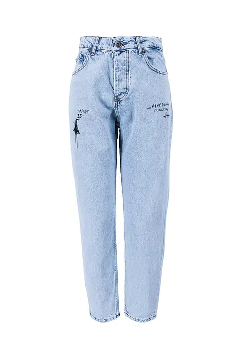 Светли дънки с текстов принт, Син, Памук, тип Mom, Текст,