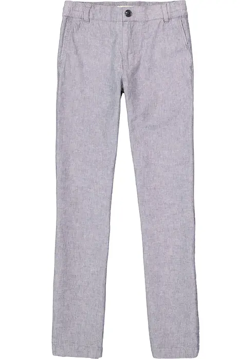 Чино панталон от смес памук и лен. Този артикул е перфектната основа за всеки мъж. Тези панталони имат нормална кройка, заострени крачоли, странични джобове и еластичен колан с копче и цип. Артикулът е изработен от 80% памук и 20% лен.