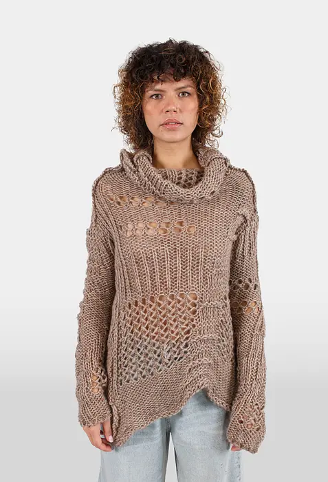 Този бежов пуловер е идеален за студените дни, изработен от топла смес от 70% вълна и 30% акрил. Това съчетание гарантира мекота, топлина и комфорт при носене.Пуловерът е със свободна кройка и дълги ръкави, което осигурява небрежен и удобен стил. Неутралният бежов цвят го прави лесен за комбиниране с различни долнища и аксесоари.