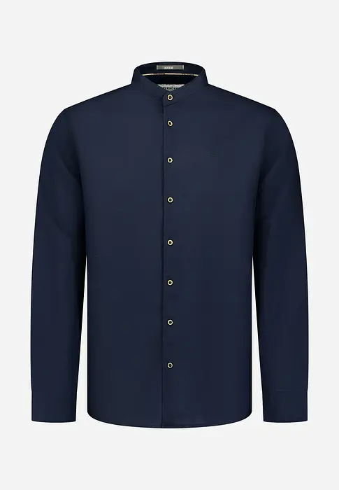 Риза с дълъг ръкав и изправена яка, изработена от комбинация от лен и памук за оптимален комфорт. Изчистеният дизайн я прави универсален избор за различни стилове и поводи.