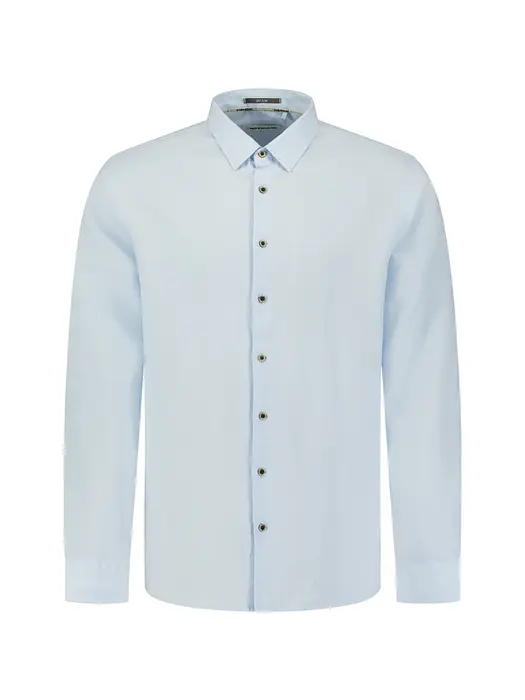 Ленената риза съчетава вечен дизайн с лекотата и дишането на лена. Неговата фина текстура и удобна кройка го правят идеален както за небрежен, така и за елегантен ежедневен външен вид. Перфектен за топлите дни благодарение на ефирната си материя.
