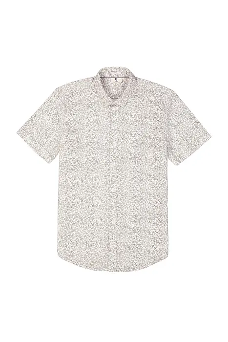 Риза с цял принт. Артикул с модерен принт. Тази риза е с къси ръкави, яка, закопчаване с копчета и нормална кройка. Този артикул е изработен от 70% памук и 30% лен.