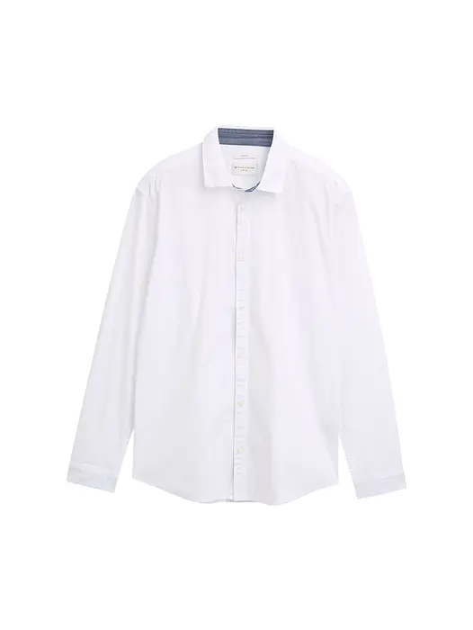 Обикновена риза в едноцветни цветове с еластичност за по-голяма свобода на движение и удобно прилягане. Изработена от тъкан памучен поплин с еластан.