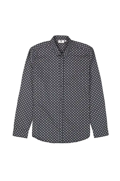 Стилна риза с цялостен принт. Тази риза е с класическа яка, дълги ръкави и закопчаване с копчета, със стандартна кройка за оптимален комфорт. Този артикул е изработен от 100% памук, което осигурява дишащо и меко носене.