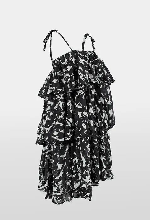 Тази елегантна рокля е със свободна кройка и дължина над коляното, което я прави идеална за топлите дни. Изработена е от 100% памук, осигуряващ мекота и дишаемост. Дизайнът е без ръкави, а целият модел е покрит с нежен флорален принт, придаващ свежест и женственост.