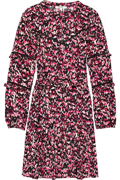 Рокля с цялостен принт. Истински акцент във вашия гардероб! Тази рокля е с дълги ръкави, обло деколте и свободна кройка. Изработена е от 99% вискоза и 1% метална нишка.