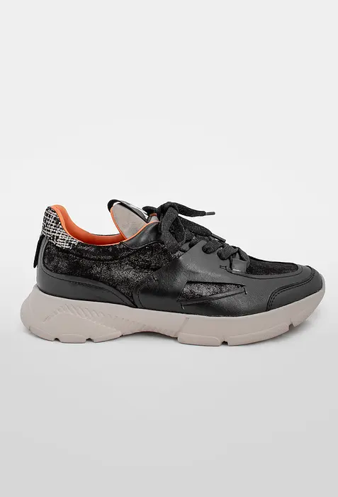 Тези черни сникърси съчетават спортно-елегантен стил с висококачествена естествена кожа напа с гланцов ефект "Лучидо", придаващ изтънчен вид. Закопчаването е с връзки, осигуряващи стабилност и добро прилягане. Равното ходило и кръглият връх гарантират комфорт през целия ден. Вътрешната част също е изработена от естествена кожа, а олекотеното гумено (полиуретан) ходило допринася за лекотата при ходене.