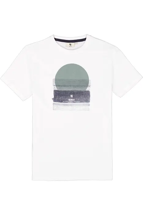 Тениска с щампа на гърдите. С този артикул можете да комбинирате безкрайно. Тази тениска е с къси ръкави, обло деколте и нормална кройка. Този артикул е изработен от 100% памук.