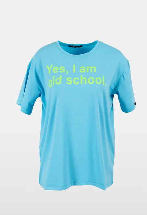 Дамска тениска с овално деколте, Тениска, Син, Памук, Текст, Овално деколте,