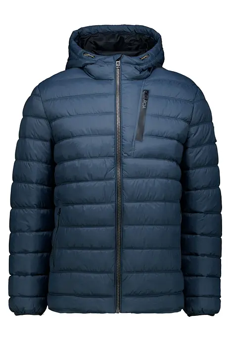 Леко подплатено пухено яке с джоб на гърдите. Това подплатено яке е изработено от водоотблъскващ материал и е подплатено с мек пълнеж от имитация на пух за комфорт и топлина. Освен това, якето разполага с регулируема качулка, дълги ръкави, цип с гумено покритие, странични джобове с цип и стандартна кройка. Външният слой на това яке е изработен от 100% полиамид.
