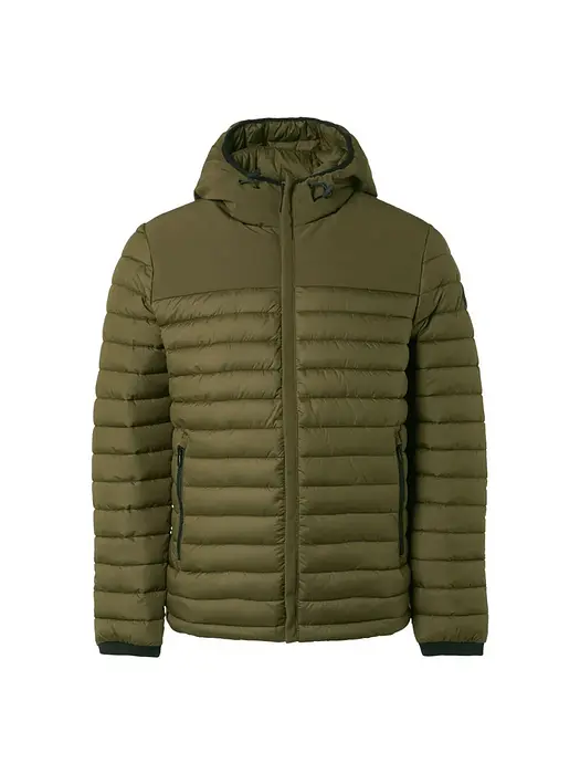 Изработено е от подплатен материал, който придава леко и удобно усещане. Якето има спортна визия с множество характерни детайли, като качулка с регулируеми връзки, еластични маншети, странични джобове с цип и лого емблема на ръкава.
