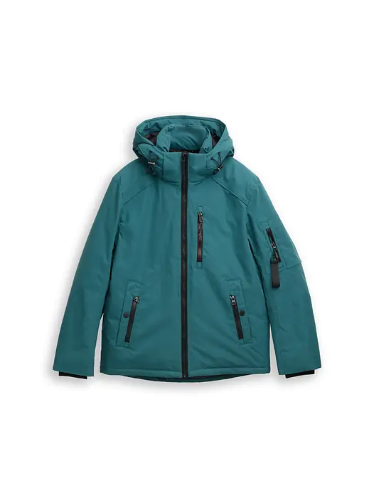 Топло зимно яке със сваляща се качулка и етикет с лого на ръкава. Със странични джобове отпред, джоб на гърдите и джоб на ръкава. Допълнителен вътрешен джоб за съхранение на мобилен телефон, ключове и портфейл, който може да се закопчае с цип.