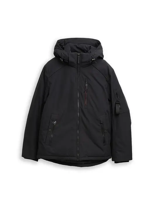 Топло зимно яке със сваляща се качулка и етикет с лого на ръкава. Със странични джобове отпред, джоб на гърдите и джоб на ръкава. Допълнителен вътрешен джоб за съхранение на мобилен телефон, ключове и портфейл, който може да се закопчае с цип.